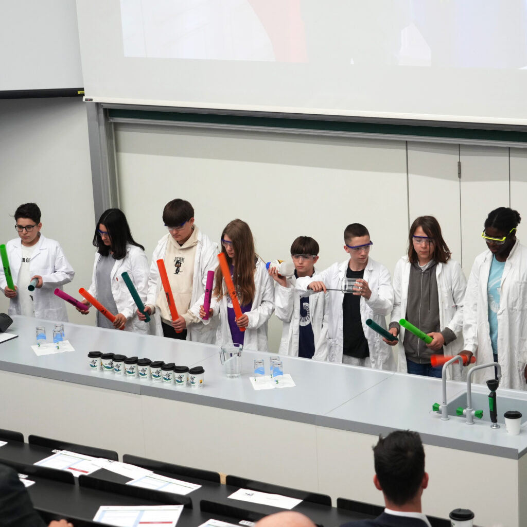 Am Mittwoch, 23. April 2025 startete um 14:30 Uhr der 17. Kongress des Verbandes der Chemielehrer:innen Österreichs an der Karl Franzens Universität Graz und unsere Schüler:innen durften diese feierliche Eröffnung musikalisch untermalen. Zwischen den Reden des Rektors der Universität Graz, dem Präsidenten des Verbandes der Chemielehrer:innen Österreichs, dem Bundesminister für Bildung, der Vizerektorin der Pädagogischen Hochschule, der Geschäftsführerin der WKO und Vertreter:innes des Landes Steiermark und der Stadt Graz traten unser Vokalensemble und unser Percussionensemble auf. Ein spontanes Geburtstagsständchen für den Präsidenten des VCÖ durfte dabei auch nicht fehlen.