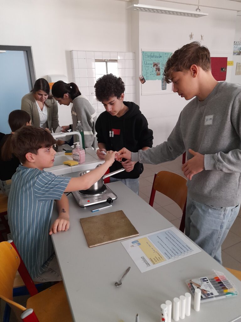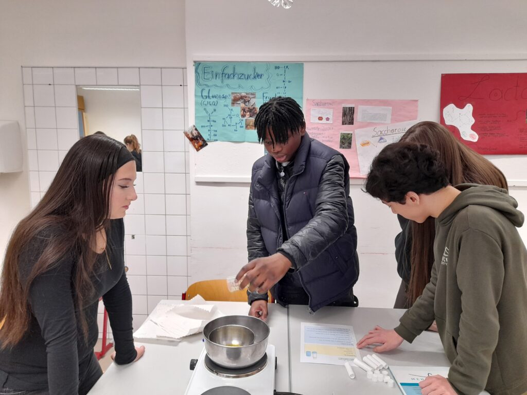 Zunächst beschäftigten sich die Schüler*innen mit der Chemie hinter Kosmetika und erstellten an einem Projekttag unterschiedlichste Lernprodukte zu Haarpflege, Make up, Hautpflege, Parfüm und vielem mehr. Dabei bemerkten die Schüler*innen immer wieder, dass in zahlreichen Kosmetika Glycerin enthalten ist. Mit diesem Stoff beschäftigten wir uns deshalb näher und stellten fest, dass Glycerin unter anderem ein Abfallprodukt der Biodieselherstellung ist und dass dies sogar aus Altöl hergestellt werden kann. Die Firma „Kanzler Verfahrenstechnik GmbH“ unterstützte uns, indem wir in ihrem Technikum Biodiesel und somit auch Glycerin im Labormaßstab herstellen durften. Dieses selbst produzierte Glycerin wurde dann mittels MS/GC nachgewiesen. Darüber hinaus besuchte uns der Geschäftsführer der Firma „Glaconchemie GmbH“ aus Deutschland und erzählte uns, wie sie in großen Mengen aus Rohglycerin Pharma-Glycerin für Kosmetika aufbereiten. Abgerundet wurde dieses Projekt mit einer öffentlichen Präsentation der selbsterstellten Lernprodukte.